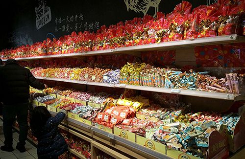 春節(jié)臨近,顧客在超市選購糖果年貨/人民網(wǎng)記者崔元苑攝