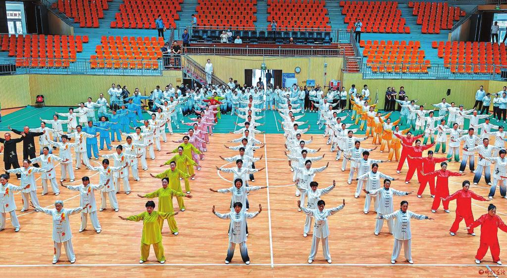 來(lái)自市直單位及各縣(市、區(qū))健身站點(diǎn)的23支代表隊(duì)240多名運(yùn)動(dòng)員、教練員及裁判員參加了此次比賽。運(yùn)動(dòng)員精神抖擻,伴隨著悠揚(yáng)動(dòng)聽(tīng)的音樂(lè)節(jié)奏,展演了健身氣功八段錦,一招一式、如潮涌動(dòng),蔚為壯觀;各站點(diǎn)隊(duì)員動(dòng)作剛?cè)嵯酀?jì)、整齊有序,盡顯多年習(xí)練的功底。