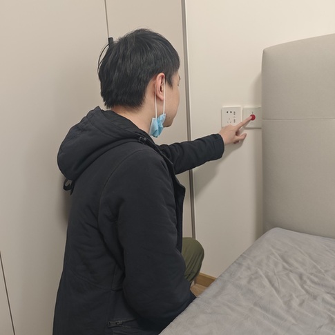 10月29日,記者首先來(lái)到諾德逸府小區(qū)1號(hào)樓的居民家中走訪。只見緊急呼叫按鈕裝置位于主臥室的墻上,緊靠著床頭,裝置的中間是一個(gè)紅色按鈕,下面還有“SOS”“緊急呼叫”的字樣。記者按下按鈕,沒(méi)發(fā)現(xiàn)任何反應(yīng),既沒(méi)有燈光閃爍,也沒(méi)有撥號(hào)的聲音。