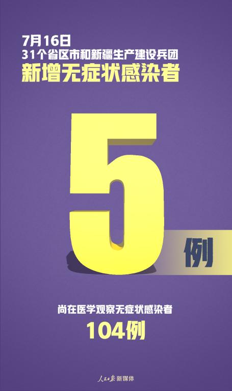 31個(gè)省(自治區(qū)、直轄市)和新疆生產(chǎn)建設(shè)兵團(tuán)報(bào)告新增無(wú)癥狀感染者5例(境外輸入2例);當(dāng)日無(wú)轉(zhuǎn)為確診病例;當(dāng)日解除醫(yī)學(xué)觀察5例(境外輸入4例);尚在醫(yī)學(xué)觀察無(wú)癥狀感染者104例(境外輸入79例)。