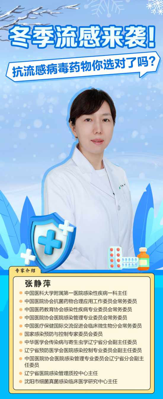 冬季氣溫驟降,流感來勢洶洶。流感是一種由流感病毒引起的急性呼吸道傳染病,在人群中有較高的發(fā)病率。流感患者通常會出現(xiàn)發(fā)熱、咳嗽或咽痛等癥狀。部分癥狀較重的患者還會感到頭痛、惡心、肌肉酸痛,甚至出現(xiàn)肺炎等并發(fā)癥,需要及時就醫(yī)用藥治療。那么,常見的抗流感藥物有哪些?抗病毒藥物治療的最佳時間是什么?怎樣服藥更科學(xué)有效?本期請到中國醫(yī)科大學(xué)附屬第一醫(yī)院感染性疾病一科主任張靜萍教授為大家解疑釋惑。