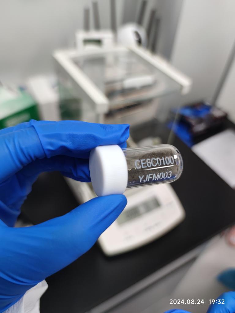 2024年8月24日,在中國科學(xué)院廣州地球化學(xué)研究所實驗室內(nèi)拍攝的月壤樣品。(中國科學(xué)院廣州地球化學(xué)研究所供圖)
