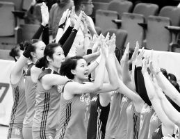 9月9日,中國女排隊員相互激勵。當日,女排大冠軍杯比賽繼續(xù)在日本名古屋綜合體育館進行。中國女排以3比0戰(zhàn)勝俄羅斯女排,取得了第四場勝利。