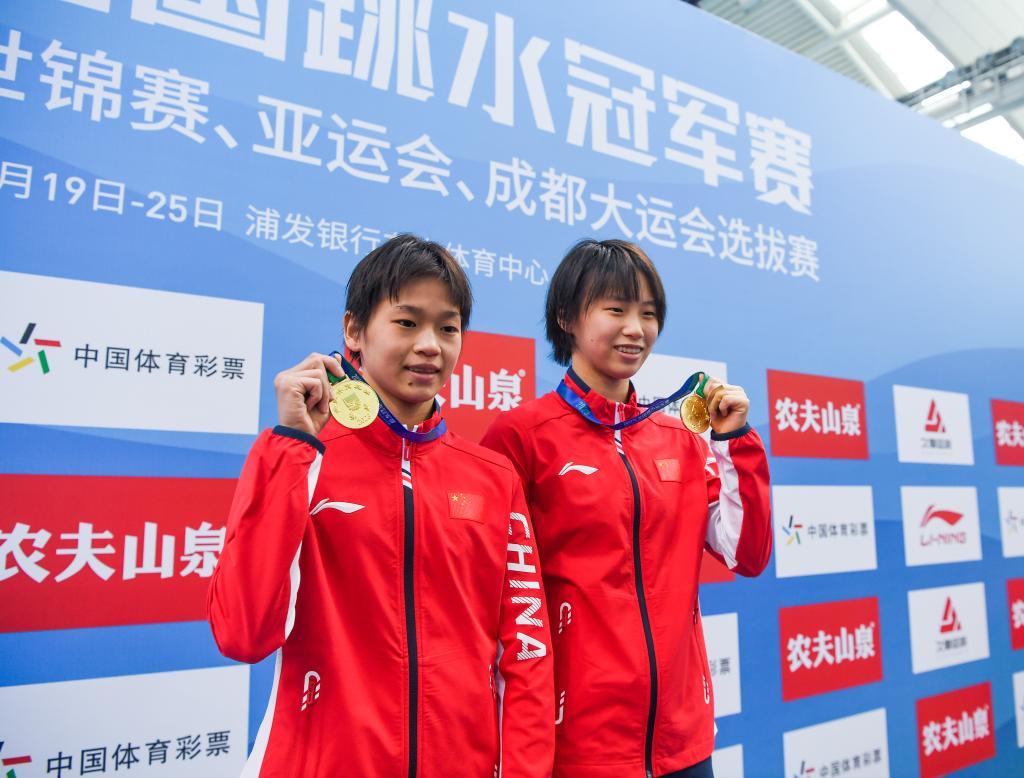 新華社上海3月19日電(記者 許東遠(yuǎn))19日,2023年全國(guó)跳水冠軍賽在上海開賽。全紅嬋與陳芋汐搭檔奪得女子雙人10米跳臺(tái)冠軍,廣東隊(duì)包攬男子雙人3米跳板金銀銅牌,陳藝文和老搭檔昌雅妮拿下女子雙人3米跳板金牌。