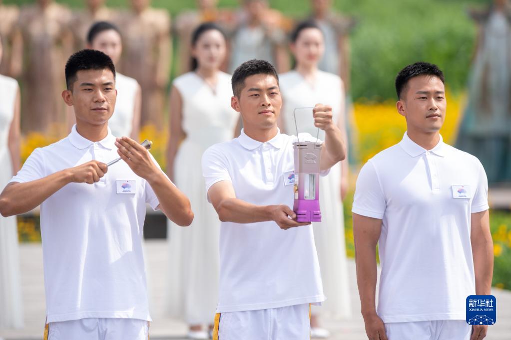 6月15日,采火使者展示圣火。新華社記者 江漢 攝