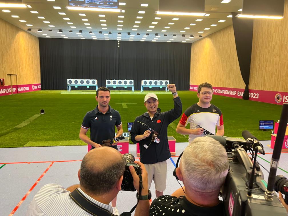 該項(xiàng)目比賽中,中國隊(duì)老將新人都有出色發(fā)揮。首次參加國際比賽的王鑫杰資格賽打出588環(huán)排名第一,與位居次席的李越宏攜手晉級決賽。他們兩人與劉楊攀組成的中國隊(duì)團(tuán)體成績1756環(huán),追平了世界紀(jì)錄,足足領(lǐng)先亞軍德國隊(duì)16環(huán)。