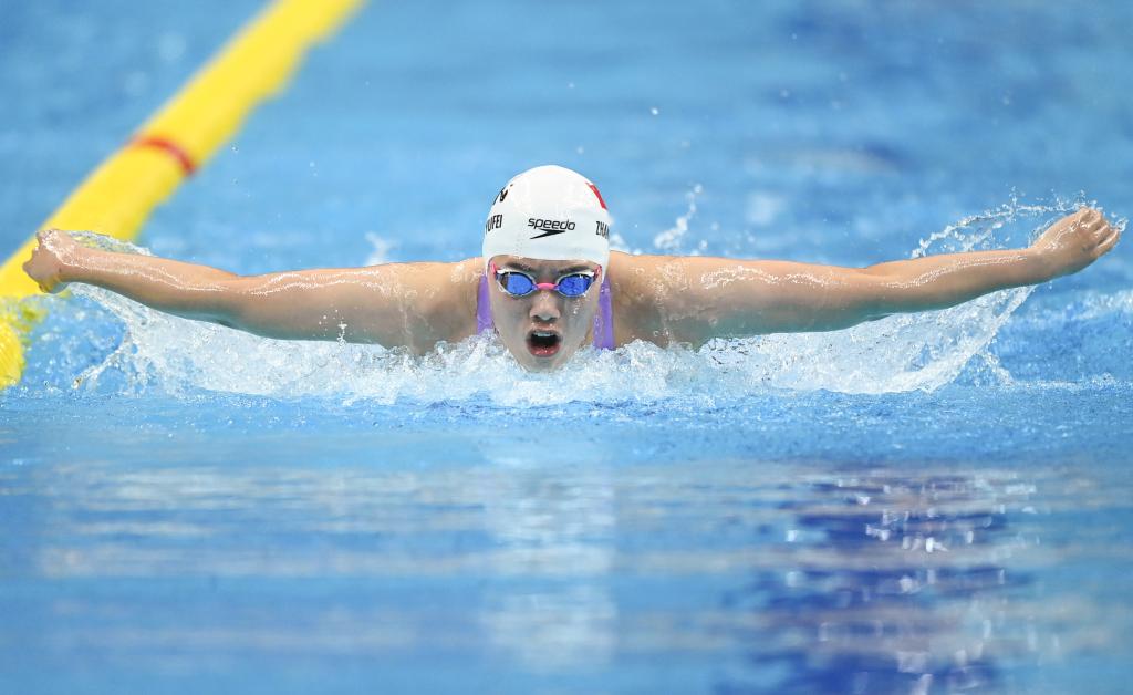 9月24日,中國隊選手張雨霏在女子200米蝶泳決賽中以2分05秒57破賽會紀錄的成績奪冠。
