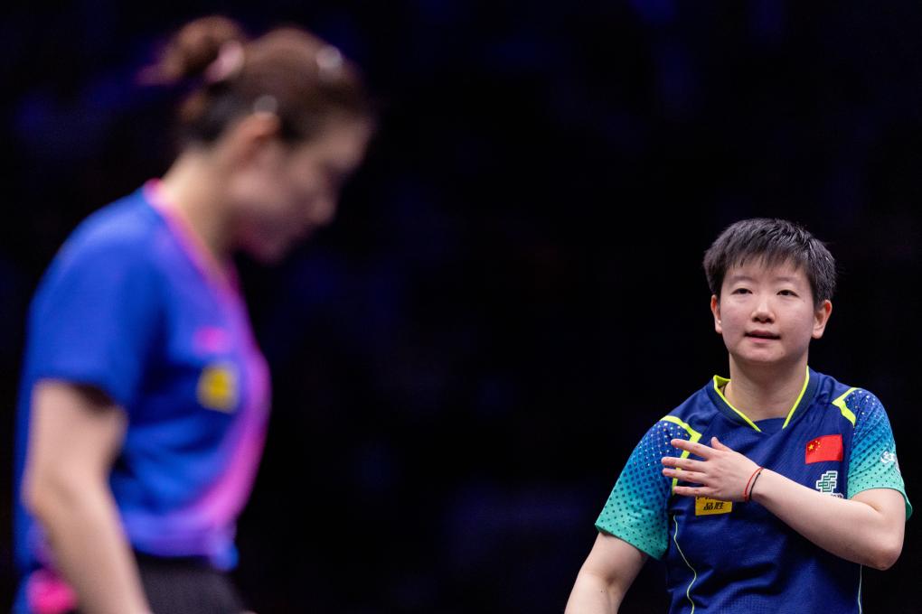 兩場女單半決賽在國乒隊員之間進(jìn)行,王曼昱對陣王藝迪,陳夢對陣孫穎莎,王曼昱、孫穎莎分別以4:0和4:2勝出。