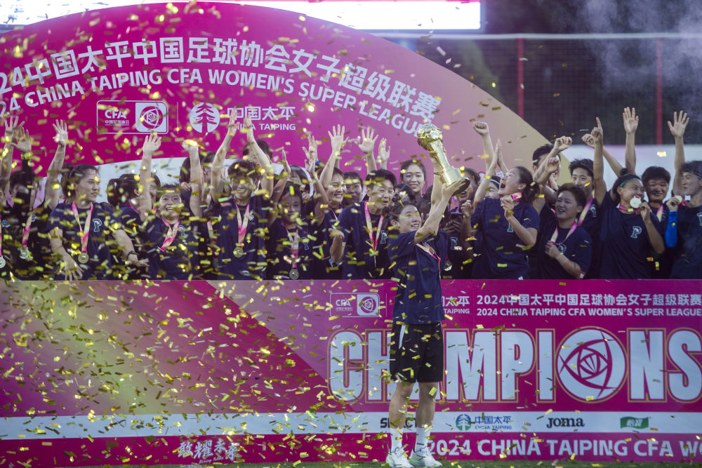 新華社武漢9月28日電(記者岳東興、樂文婉)2024中國足協(xié)女超聯(lián)賽28日上演最后一輪較量,衛(wèi)冕冠軍武漢車谷江大女足在主場以1:0擊敗陜西志丹女足,連續(xù)第五次獲得女超冠軍。