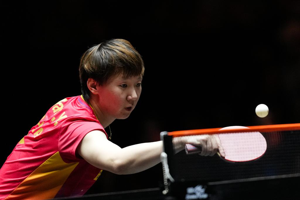 11月24日,王曼昱在比賽中回球。新華社記者 張笑宇 攝