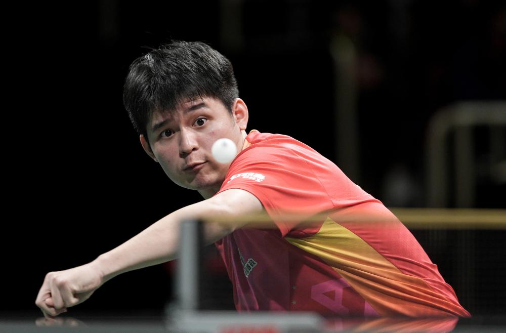 12月8日,中國(guó)隊(duì)選手林詩棟在男單比賽中。新華社記者 江宏景 攝