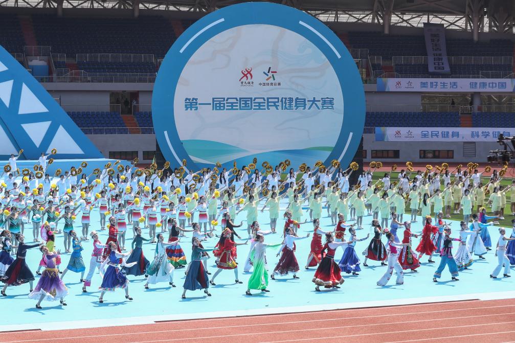 5月20日,演員在第一屆全國(guó)全民健身大賽開幕式現(xiàn)場(chǎng)進(jìn)行表演。新華社記者 潘昱龍 攝