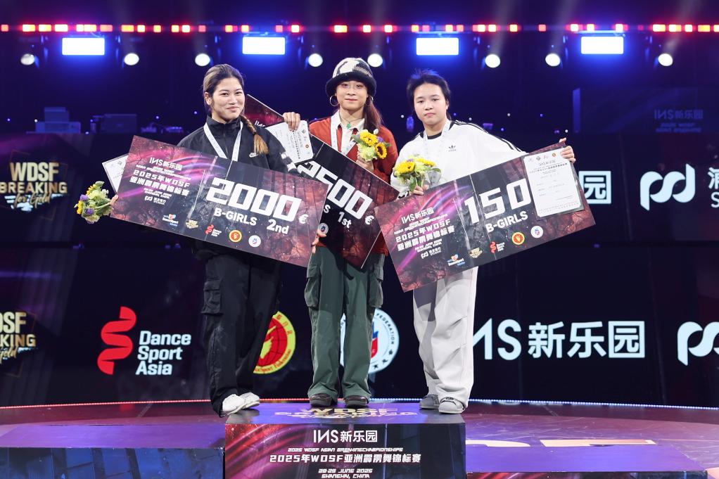 新華社上海6月29日電(記者許東遠(yuǎn)、肖亞卓)2025年亞洲霹靂舞錦標(biāo)賽29日在上海盧灣體育館結(jié)束。中國(guó)選手郭樸在女子組表現(xiàn)出色,繼前一日奪得亞洲青年錦標(biāo)賽冠軍后,再度在成年組比賽中折桂,實(shí)現(xiàn)連冠。男子組方面,日本名將、杭州亞運(yùn)會(huì)冠軍半井重幸則憑借穩(wěn)定發(fā)揮摘得金牌。