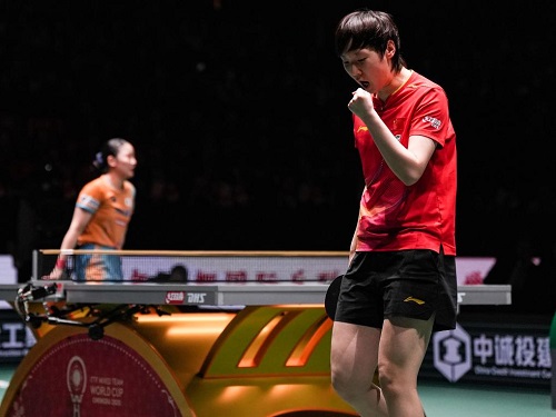 第三場男單由林詩棟對陣日本隊頭號男單張本智和。背水一戰(zhàn)的張本智和在中遠臺相持中占據(jù)上風,以11:6為日本隊扳回一局。但林詩棟迅速調整,加強了回球的落點變化,使得張本智和連續(xù)出現(xiàn)失誤。林詩棟連追兩局,2:1逆轉勝出的同時,幫助中國隊取得8:1的大勝,實現(xiàn)混團世界杯三連冠。