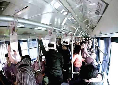 南京709路公交車3月13日監(jiān)控視頻截圖(左一為智杰) 本報訊 近日,定襄青年智杰被定襄縣委、縣政府評選為“定襄好人”并給予獎勵。一座陌生的城市,一輛擁擠的公交車,智杰以打工者的善意姿態(tài),在司機(jī)突發(fā)疾病失去知覺的緊要關(guān)頭,毅然撲向方向盤,一腳踩下剎車。救人于危難之中,“定襄好人”智杰當(dāng)之無愧。