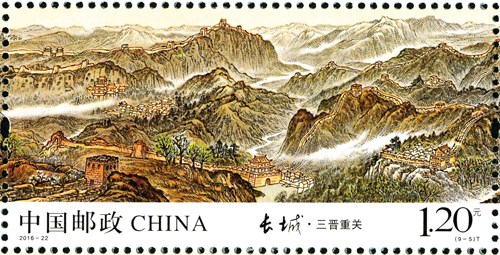 中國萬里長城是世界上修建時間最長、工程量最大的冷兵器戰(zhàn)爭時代的國家軍事性防御工程,是中華民族的古建瑰寶,凝聚著我們祖先的血汗和智慧,是中華民族的象征和驕傲。長城有極高的旅游觀光價值和歷史文化意義,是中華民族古老文化的豐碑和智慧結(jié)晶,象征著中華民族的血脈相承和民族精神。1961年,長城被列為國家級重點文物保護單位,1987年,被列為世界文化遺產(chǎn),2002年,被列為世界新七大奇跡。1984年,鄧小平、習(xí)仲勛作出“愛我中華,修我長城”的題詞,2006年,國務(wù)院頒布了《長城保護條例》。2015年,習(xí)近平總書記、李克強總理對長城保護工作作出了重要批示。今年,為紀念《長城保護條例》頒布10周年,中國郵政專門發(fā)行了《長城》特種郵票,一套九枚,分別為:關(guān)山滄海、薊遼天塹、燕趙雄風(fēng)、京畿屏障、三晉重關(guān)、長河飛龍、高原北望、大漠關(guān)城、絲路古道,總面值13.2元。全套9枚郵票中,山西有兩枚長城郵票。第5枚“三晉重關(guān)”、第6枚“長河飛龍”展現(xiàn)了山西十幾處長城景點,成為全國境內(nèi)長城入選最多的省份。長城景點濃縮方寸郵票之中,姿態(tài)萬千,各具特色。郵票色彩豐富,設(shè)計精美,充分體現(xiàn)出了長城的雄偉壯觀。