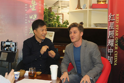 由于拍攝成本的巨大,作為制片人,白小白巴不得將6000萬的每一分都掰開兩半來花。著名演員蔡國慶、劉濤、黃海冰、趙文卓、孫茜等源于對長征精神的敬仰,主動愿意減少自己的片酬友情出演,使更多的資金投入到拍攝和制作中,這也是讓白小白和導演趙東陽最為感動的。該劇從今年1月17日在上海開機,輾轉(zhuǎn)寧波、杭州、象山、北京、綏德、安塞、延安等斯諾去過的地方實地取景,還原歷史,歷時四個多月于5月27日殺青。在拍攝過程中,一直奔波在各地拍攝現(xiàn)場的白小白不得不將一歲多的孩子帶在身邊做兼職媽媽。她的精神感動了劇組所有演職人員,大家常常熬夜加班,甚至帶病工作都毫無怨言。在延安市安塞縣(現(xiàn)安塞區(qū))一山頂需要拍攝500余名工農(nóng)紅軍打腰鼓的場景,十分壯觀,白小白和趙東陽積極與當?shù)卣畢f(xié)調(diào)幫忙,延安市政府、安塞縣政府立即召開協(xié)調(diào)會議連夜調(diào)動機械拓寬山路、運送演職人員,大力支持劇組的拍攝。這個在電視劇中呈現(xiàn)的30多秒的畫面,光拍攝就用了整整一天的時間。在《紅星照耀中國》著作中,作者斯諾這樣寫到,“這是我見過的最龐大的鼓樂隊,在黃土高原上豪邁、灑脫、粗獷,這是民族精神的展現(xiàn)?!睂а葳w東陽說:“這是斯諾眼中工農(nóng)紅軍的壯舉,我們在演繹中一定得將它表現(xiàn)的淋漓盡致?!?/p>