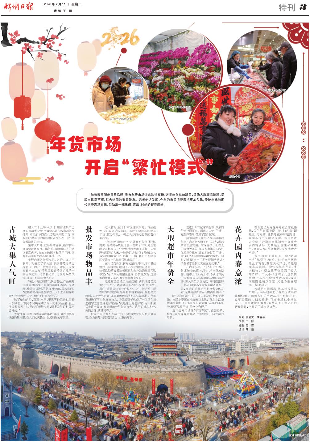隨著春節(jié)腳步日益臨近,我市年貨市場(chǎng)迎來(lái)購(gòu)銷高峰,各類年貨琳瑯滿目,采購(gòu)人群摩肩接踵,呈現(xiàn)出供需兩旺、紅火熱鬧的節(jié)日景象。記者走訪發(fā)現(xiàn),今年的市民消費(fèi)需求更加多元,傳統(tǒng)年味與現(xiàn)代消費(fèi)需求交織,勾勒出一幅熱鬧、喜慶、時(shí)尚的新春畫(huà)卷。