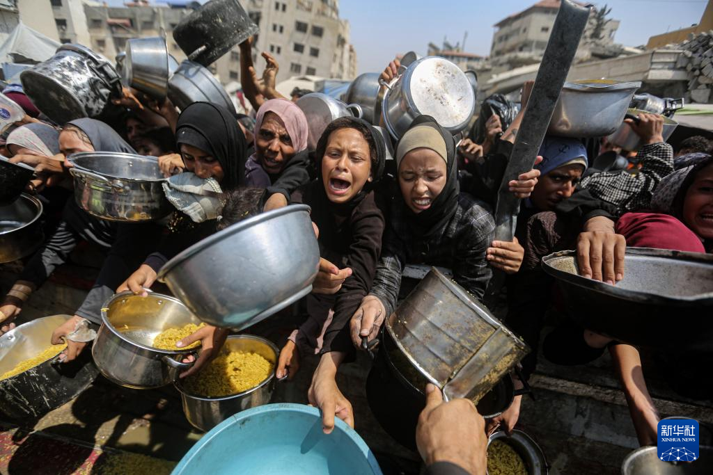 8月10日,民眾在加沙城領取免費食物。新華社發(fā)(里澤克·阿卜杜勒賈瓦德攝)