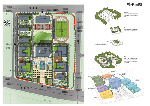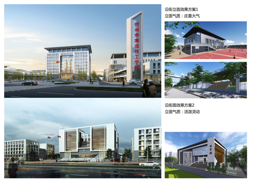 我們本著國(guó)匠精神-九宮格布局、山水格局-背山面水、四水歸堂的設(shè)計(jì)理念,團(tuán)結(jié)上學(xué)、振興技校的精神,努力將本項(xiàng)目打造成為忻州市的新名片,圓技校學(xué)生一個(gè)大學(xué)夢(mèng)。我們注重整體空間的舒適性、藝術(shù)性,不強(qiáng)調(diào)過分統(tǒng)一。設(shè)計(jì)中注重細(xì)節(jié)處理和學(xué)生們行為模式的考慮;將環(huán)境氣氛和設(shè)施布置的更具有靈活性、親和力,適應(yīng)寬松、生活化的教學(xué)模式。