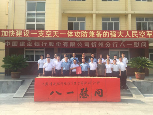 7月31日,八一建軍節(jié)來(lái)臨之際,忻州分行劉昱星行長(zhǎng)攜紀(jì)委書(shū)記陳慶鵬、副行長(zhǎng)趙彤、高級(jí)客戶(hù)經(jīng)理王平、副行長(zhǎng)郝翀平及部分部門(mén)負(fù)責(zé)人前往空軍某部開(kāi)展“軍銀攜手,共建同行”八一慰問(wèn)活動(dòng),并遞交慰問(wèn)信和慰問(wèn)品。