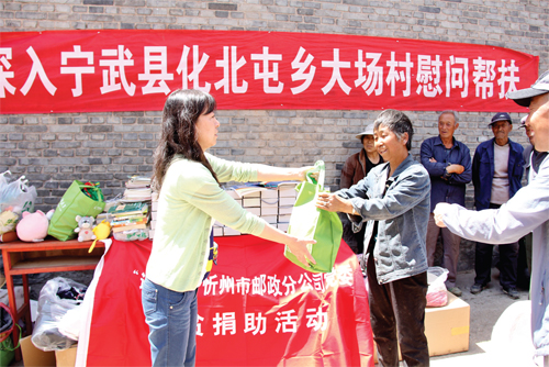 本報(bào)訊 在“ 七一”建黨節(jié)到來(lái)之際,忻州郵政分公司黨委選派部分黨員志愿者、職工代表奔赴寧武縣化北屯鄉(xiāng)大場(chǎng)村開(kāi)展獻(xiàn)愛(ài)心幫扶捐助活動(dòng),將愛(ài)心衣物384 件、書(shū)法用品60 盒、兒童用品20 件、各類書(shū)籍161 冊(cè)、現(xiàn)金1490 元通過(guò)鄉(xiāng)扶貧辦移交給該村村委會(huì)。村民們看到送來(lái)的捐助物資,都很感動(dòng),心里覺(jué)得很溫暖。