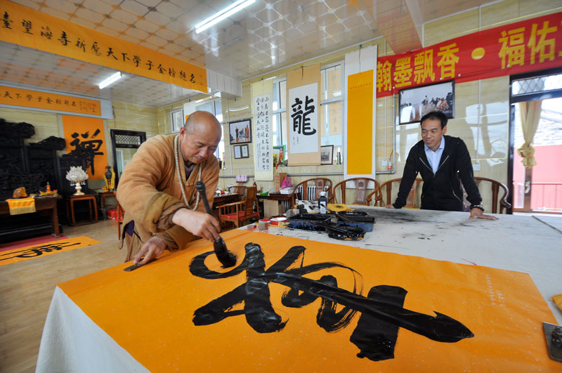 29日,中國佛教講經(jīng)交流會在五臺山召開之際,記者走訪了東臺頂望海寺釋覺一法師,他在勤修佛法的同時在書畫藝術(shù)上也自成一家。他認(rèn)為,佛法與書畫關(guān)系密切相通之處,學(xué)習(xí)佛法可促進書法境界的提升,有助于佛法的弘揚。