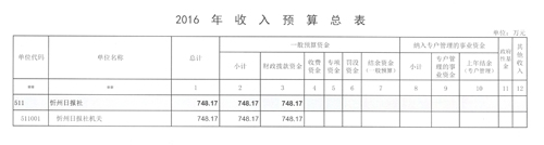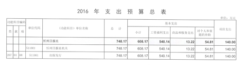 忻州日?qǐng)?bào)社2016年度部門預(yù)算及“三公”經(jīng)費(fèi)預(yù)算公開情況