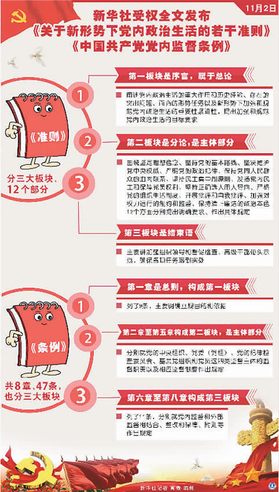 加強(qiáng)和規(guī)范黨內(nèi)政治生活、加強(qiáng)黨內(nèi)監(jiān)督,是新形勢(shì)下加強(qiáng)黨的建設(shè)的重要課題。這次六中全會(huì)制定準(zhǔn)則、修訂條例,正是著眼解決新形勢(shì)下黨內(nèi)突出問題而進(jìn)行的重要頂層設(shè)計(jì)。