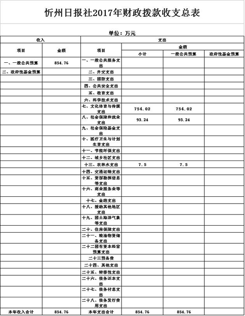 忻州日報(bào)社2017年度部門預(yù)算及“三公”經(jīng)費(fèi)預(yù)算公開情況