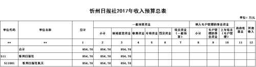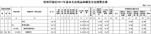 忻州日報社2017年度部門預(yù)算及“三公”經(jīng)費預(yù)算公開情況
