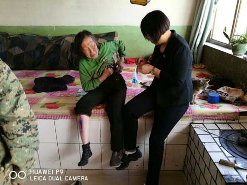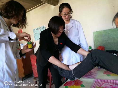 5月16日,忻州市衛(wèi)計委副主任楊春枝帶著黨支部部分黨員和忻州市中醫(yī)院的醫(yī)護人員再次趕赴到扶貧點寧武縣涔山鄉(xiāng)漚泥灣村,一進村她(他)們連口水也沒有來得及喝,就安排中醫(yī)院醫(yī)護人員給村民們進行體檢,楊主任和支部黨員就組織村委在村的6名黨員干部召開維護核心見諸行動專題黨課,她(他)們共同重溫黨章,面對黨旗舉手宣誓,楊主任親自上臺主講了一堂生動的黨課。隨后,她(他)們再次看望了貧困戶,在幫扶聯(lián)系貧困戶張存花家中,楊春枝主任從包里掏出自費購買的膏藥,并親手扶起衣服給老人貼在患處?!澳銈兇罄线h的每次都來看望我,上次我說腰疼,這次就給我?guī)砹烁嗨?,還親手給我貼上,不知道該怎樣感謝呀,這閨女就是比親閨女都親……”寧武縣涔山鄉(xiāng)漚泥灣村80歲的殘疾貧困戶張存花緊緊拉著扶貧干部忻州市衛(wèi)計委副主任楊春枝的手,激動地久久不肯松開。(郝法林 米永平)