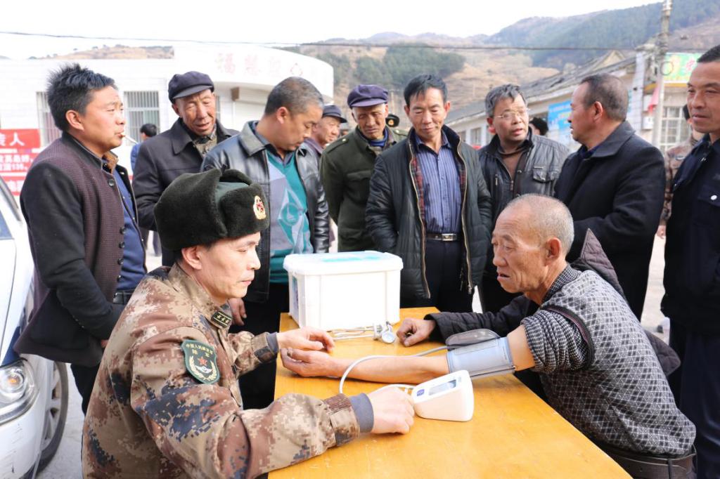 衛(wèi)生隊(duì)領(lǐng)導(dǎo)為村民測量血壓。劉志剛 攝