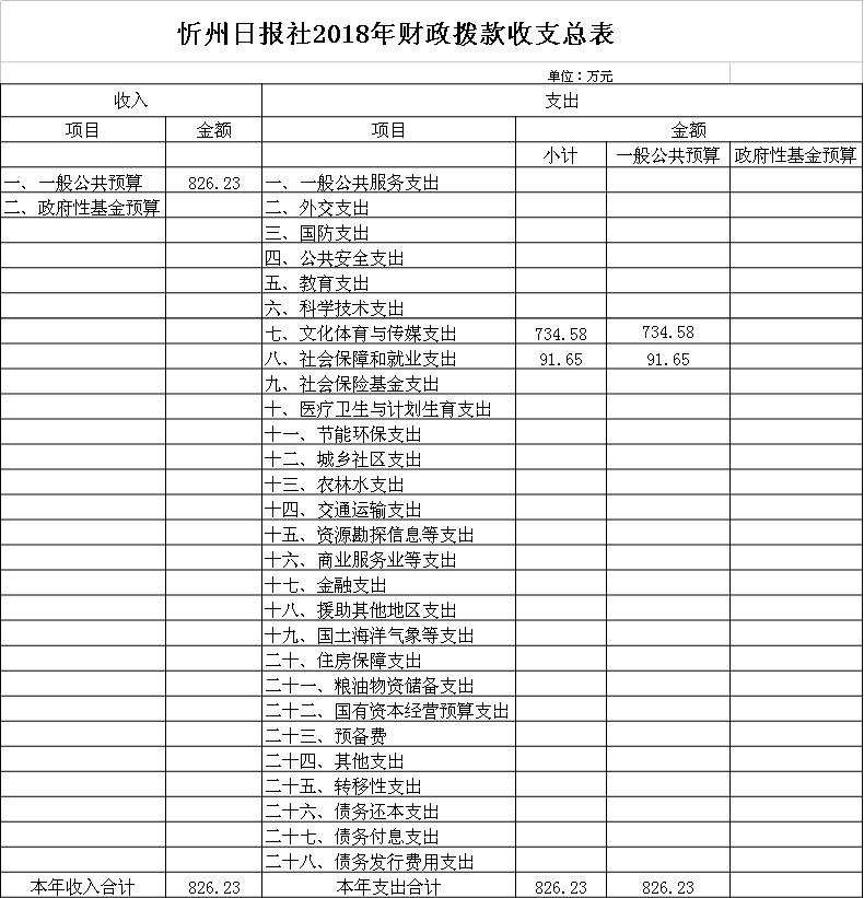 忻州日報社2018年度部門預算及“三公”經費預算公開情況