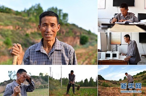 董留照,男,1949年出生,山西省長治市武鄉(xiāng)縣韓道溝村人,現(xiàn)任韓道溝村黨支部書記。近年來,董留照帶領(lǐng)村民大力發(fā)展梅杏種植、家禽養(yǎng)殖,改善村容村貌。2018年,韓道溝村實現(xiàn)整村脫貧,村民年人均收入達(dá)到4500多元。 左上:董留照肖像;右上:董留照在村委會整理材料;右中:董留照在村委會通過廣播向村民宣傳農(nóng)業(yè)政策;右下:董留照在地里松土;下中:董留照在地里忙碌;下左:董留照擦拭額頭上的汗水(拼版照片,6月10日攝)。 地處晉東南的山西省長治市,位于由太行山、太岳山環(huán)繞而成的上黨盆地中。在群山中、崖壁上,許多村莊自然條件惡劣,基礎(chǔ)設(shè)施落后,脫貧致富是大山深處人們的迫切心愿。 近年來,一場場脫貧攻堅戰(zhàn),在一個個深山村打響。政府全力探索脫貧路徑的同時,山區(qū)百姓因地制宜,靠自己的雙手和智慧走上致富路,交出了一份扎實的脫貧答卷。 記者在太行山、太岳山一路尋訪,記錄下多位70歲老人的生活。這些共和國的同齡人,親歷了山鄉(xiāng)的巨變,見證著長治山區(qū)脫貧攻堅偉大工程的一步步推進(jìn)。 新華社記者 詹彥 攝