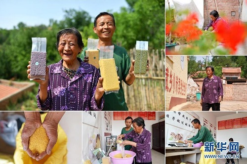 張成華,女,1949年出生,山西省長(zhǎng)治市武鄉(xiāng)縣嶺頭村人。近年來,嶺頭村在縣里有關(guān)部門的扶持下,對(duì)村民開展電商培訓(xùn)。村民們嘗試著在手機(jī)上“開店”,把小米、核桃、綠豆等農(nóng)產(chǎn)品在網(wǎng)絡(luò)上售賣。張成華的兒子魏寶玉開了網(wǎng)店后,自家的農(nóng)產(chǎn)品在網(wǎng)上銷售良好,家庭收入明顯增加。 左上:張成華(前)和兒子魏寶玉展示自家種的農(nóng)產(chǎn)品;右上:張成華在家中院子里收拾;右中:張成華走在村里的路上;右下:張成華的兒子魏寶玉將準(zhǔn)備發(fā)貨的農(nóng)產(chǎn)品進(jìn)行稱重;下中:張成華(前)將小米裝袋;下左:張成華在查看小米質(zhì)量(拼版照片,6月12日攝)。 地處晉東南的山西省長(zhǎng)治市,位于由太行山、太岳山環(huán)繞而成的上黨盆地中。在群山中、崖壁上,許多村莊自然條件惡劣,基礎(chǔ)設(shè)施落后,脫貧致富是大山深處人們的迫切心愿。 近年來,一場(chǎng)場(chǎng)脫貧攻堅(jiān)戰(zhàn),在一個(gè)個(gè)深山村打響。政府全力探索脫貧路徑的同時(shí),山區(qū)百姓因地制宜,靠自己的雙手和智慧走上致富路,交出了一份扎實(shí)的脫貧答卷。 記者在太行山、太岳山一路尋訪,記錄下多位70歲老人的生活。這些共和國(guó)的同齡人,親歷了山鄉(xiāng)的巨變,見證著長(zhǎng)治山區(qū)脫貧攻堅(jiān)偉大工程的一步步推進(jìn)。 新華社記者 詹彥 攝