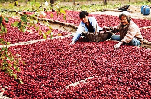 圖為棗農正在晾曬紅棗。陳 璐 攝
