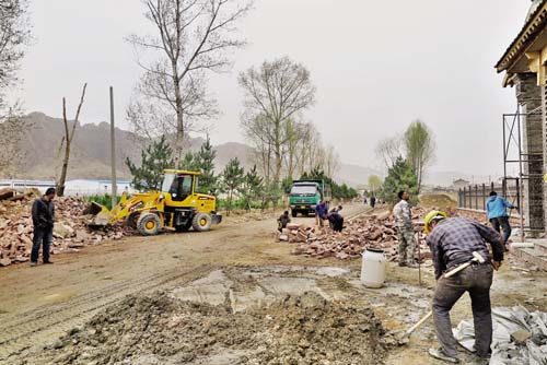據(jù)了解,為進一步改善農(nóng)村人居環(huán)境,打造美麗鄉(xiāng)村,今年以來,岢嵐縣將村容村貌整治工作列為年度重點工作,大力開展村容整潔工程。按照社會主義新農(nóng)村建設(shè)標(biāo)準(zhǔn),在全縣集中開展以“自有物品入院、殘墻斷壁修復(fù)、三化(綠化、亮化、硬化)建設(shè)同步”為主要內(nèi)容的農(nóng)村環(huán)境綜合整治,以村內(nèi)街道兩側(cè)、鎮(zhèn)村駐地、農(nóng)貿(mào)市場為重點的村容村貌整治。圖為岢嵐縣宋家溝村村容村貌整治施工現(xiàn)場 張志遠(yuǎn) 攝