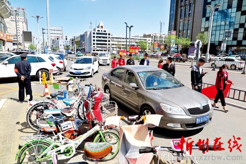 經(jīng)過連續(xù)幾年大干城建年和如火如荼的創(chuàng)衛(wèi)建設(shè),忻州市民欣喜地看到城區(qū)發(fā)生了巨大的變化,路寬了,樹綠了,現(xiàn)代化建筑鱗次櫛比。城市硬件設(shè)施的提升,更需要文明軟實力的提升,可是總有一些人,自身素質(zhì)跟不上文明的腳步,譬如近日記者在街頭看到,有人將電動車停放在機動車之間,有人扎堆將自行車電動車無序停放在街道邊,還有的司機在禁停標志前赫然停放車輛,讓城市秩序頓顯零亂之感。圖一為城區(qū)七一路網(wǎng)通公司門前自行車輛亂停亂放;圖二為有人將電動車停放在機動車之間;圖三為一輛轎車在禁停標志前橫跨盲道停放。(魯明強)