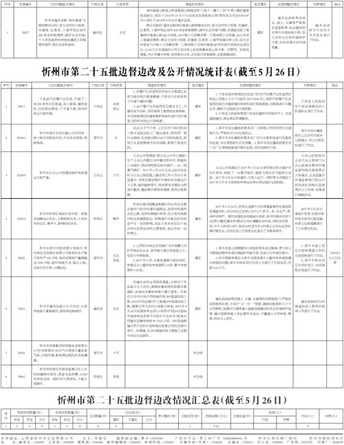 忻州市第二十四批邊督邊改及公開(kāi)情況統(tǒng)計(jì)表(X827)(截至5月26日)