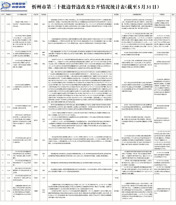 2017年5月28日晚,收到省群眾反映問題處置組督辦的第三十批群眾反映問題共計21件;其中重點案件9件。 我市高度重視,立即組織查處,截至5月31日,督辦的群眾反映問題20件已辦結(jié),1件未辦結(jié)。其中,確認屬實14件,部分屬實6件。對于屬實和部分屬實已辦結(jié)的環(huán)保問題,分別采取了相應(yīng)處理措施,其中罰款11萬元,對25名相關(guān)責(zé)任人進行了約談,對2名相關(guān)責(zé)任人進行了黨紀政紀處分。對20件群眾反映問題調(diào)查處理情況進行了信息公開。