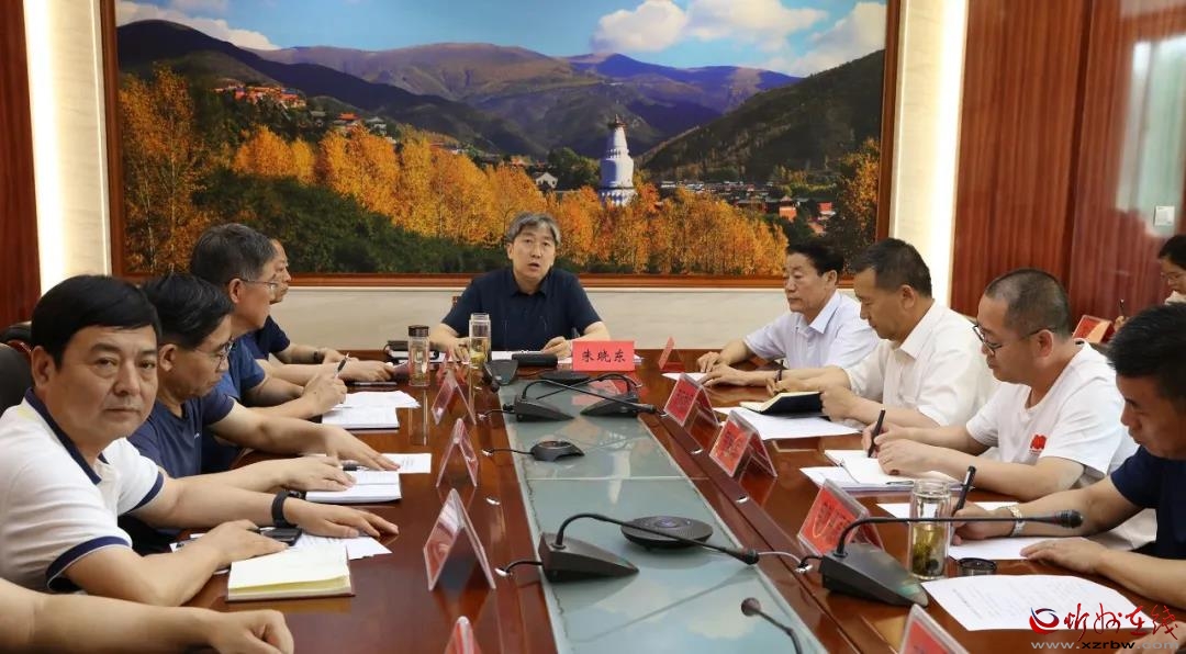 會(huì)議會(huì)場(chǎng)。范濤 攝 本報(bào)訊 (記者任逢春)7月11日中午,我市召開防汛抗旱緊急電視電話會(huì)議,聽取五臺(tái)山風(fēng)景名勝區(qū)、繁峙縣局地強(qiáng)降雨引發(fā)泥石流情況和市氣象局對(duì)當(dāng)前強(qiáng)降雨過程預(yù)測(cè)預(yù)報(bào)情況通報(bào),對(duì)水旱災(zāi)害、地質(zhì)災(zāi)害防御特別是主汛期防汛和應(yīng)急處置工作進(jìn)行再強(qiáng)調(diào)再安排再部署。市委副書記、市長朱曉東出席會(huì)議并講話,副市長、市政府秘書長郭寶厚主持會(huì)議,副市長、市公安局局長袁小波出席,市直相關(guān)部門負(fù)責(zé)同志在主會(huì)場(chǎng)參加,各縣(市、區(qū))設(shè)分會(huì)場(chǎng)。