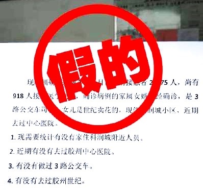 近日,有關(guān)青島新增兩名確診病例的信息在網(wǎng)上流傳,稱“膠州密切接觸者21375人,尚有918人接受醫(yī)學(xué)觀察”、“患者女婿是3路公交車司機(jī)!已經(jīng)確診了”等。