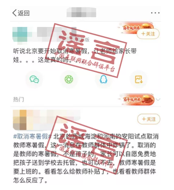 中國(guó)互聯(lián)網(wǎng)聯(lián)合辟謠平臺(tái)第一時(shí)間向教育部相關(guān)部門求證,確認(rèn)“北京、河南試點(diǎn)取消教師寒暑假”為不實(shí)消息。