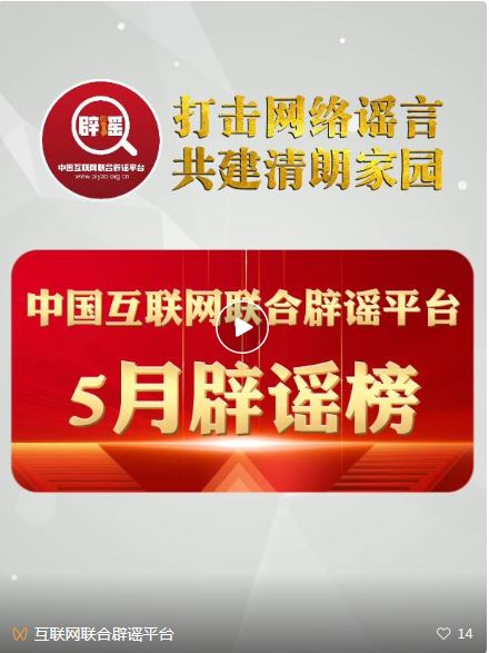 打擊網(wǎng)絡(luò)謠言 共建清朗家園 中國互聯(lián)網(wǎng)聯(lián)合辟謠平臺(tái)5月辟謠榜