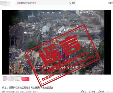 詳情:4月7日、8日,新疆阿克蘇地區(qū)拜城縣先后發(fā)生5.4、5.1級(jí)地震。震中位于無人區(qū),目前暫未收到人員傷亡或財(cái)產(chǎn)損失報(bào)告,當(dāng)?shù)赝ㄓ?、供電、交通正常。但有部分自媒體為博眼球、蹭流量,利用AI智能技術(shù)等手段拼湊網(wǎng)絡(luò)舊圖,發(fā)布拜城地震不實(shí)圖文、音視頻等信息,嚴(yán)重誤導(dǎo)網(wǎng)民。阿克蘇地區(qū)互聯(lián)網(wǎng)信息辦公室提醒,對(duì)在網(wǎng)上蓄意編造、傳播散布謠言,擾亂公共秩序等違法行為,網(wǎng)信部門將會(huì)同公安機(jī)關(guān)依法嚴(yán)厲打擊。(來源:“新疆網(wǎng)絡(luò)辟謠”微信公眾號(hào))