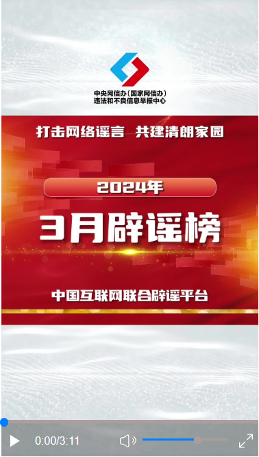 | 打擊網(wǎng)絡(luò)謠言 共建清朗家園 中國互聯(lián)網(wǎng)聯(lián)合辟謠平臺2024年3月辟謠榜 |