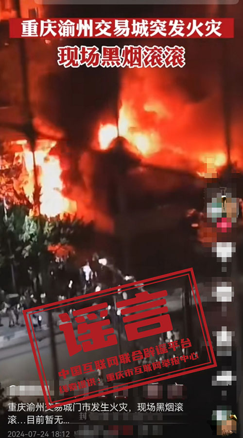 謠言:重慶渝州交易城突發(fā)火災?
