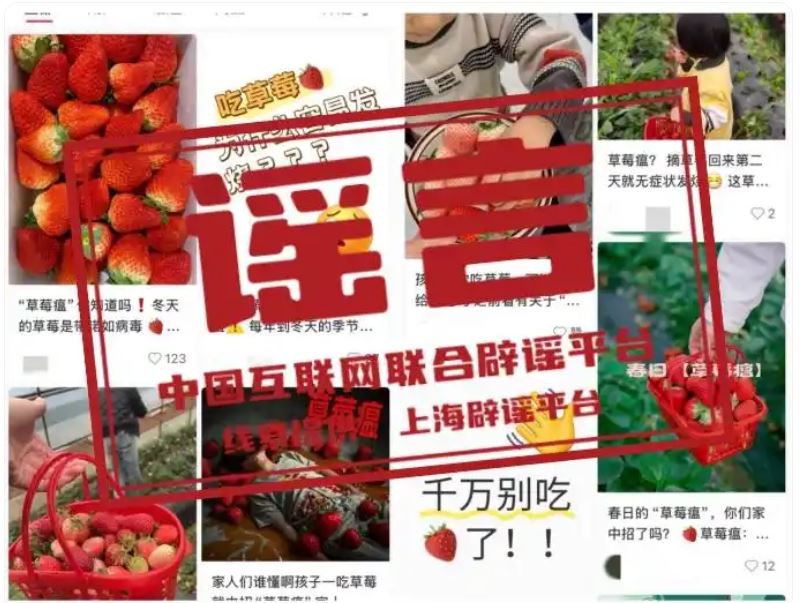 真相:近日,部分社交平臺(tái)出現(xiàn)大量有關(guān)“草莓瘟”的“善意提醒”,稱“孩子吃了草莓就會(huì)發(fā)燒咳嗽、上吐下瀉”“草莓上農(nóng)藥殘留量大”“草莓帶有諾如病毒”“大棚里種出來的草莓是反季水果”,建議大家近期不要食用草莓。經(jīng)核查,這些說法都違背了農(nóng)業(yè)常識(shí),可能嚴(yán)重誤導(dǎo)公眾。