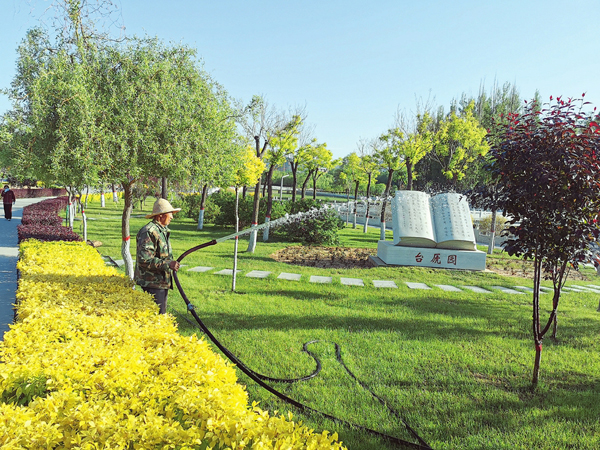 6月2日,五臺縣住建局園林處對全縣四大公園的綠化帶開始澆灌,以保證93.34公頃的喬木、灌木順利度過干燥期,為創(chuàng)建國家園林縣城提供綠色保障。圖為臺虒公園進(jìn)行夏澆。(金俊賢攝)